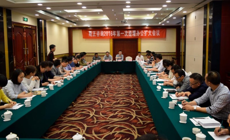 2016年第一次經理辦公擴大會議簡訊發布時間:2016-05-07 來源:李蒙 5月3日下午,寧波市斯正項目管理咨詢有限公司2016年第一次經理辦公擴大會議在新舟賓館順利召開。本次會議由董事長吳杰主持,副董事長張濤、總經理章玉明、黨支部書記兼工會主席高業寶及公司副職以上等47位同志參加了本次會議。